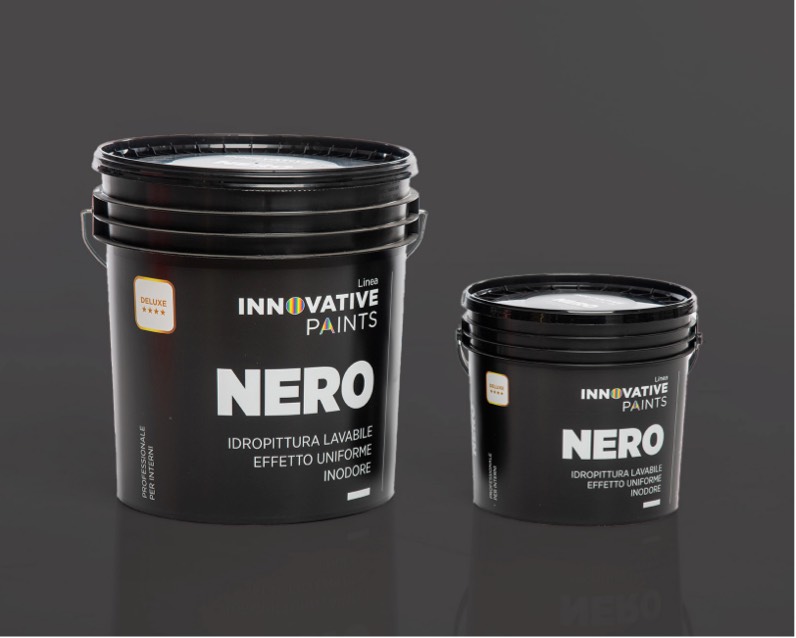 Nero, idropittura lavabile dal nero intenso super coprente.